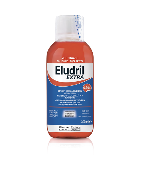 ELUDRIL Extra ajuda a combater a formação da placa bacteriana e a prevenir o desenvolvimento ou agravamento dos problemas das gengivas, contribuindo para uma melhor saúde oral. Conta com uma concentração ótima de cloro-hexidina 0,20% e um efeito prolongado até 12 horas.